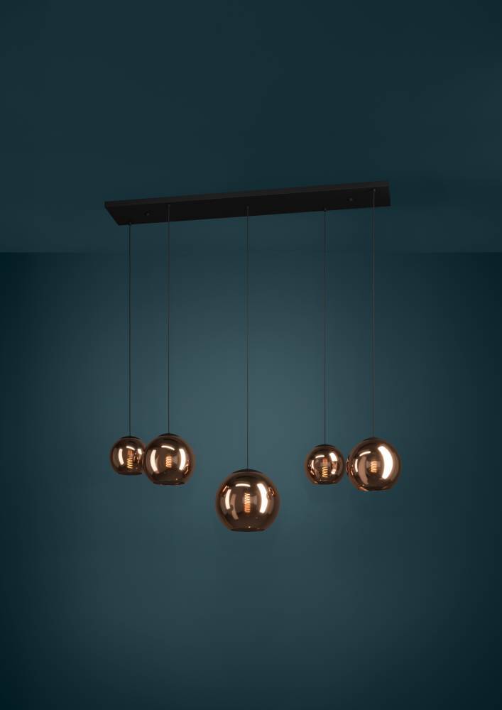 390388 Подвес CORDOBA, 5X40W(E27), сталь, черный, медный создает в помещение уют и прекрасно дополняет интерьер квартиры или загородного дома, оформленный как в классическом, так и современном стиле. Продукцию, принадлежащую к дизайнерскому классу, создают только из самых качественных и безопасных материалов с использованием новейших технологий производства. В ней идеально выверена каждая деталь. Изделие преображает пространство, гармонично сочетая в себе уют, удобство и красоту. Этой стильной модели не страшны капризы моды — и через год, два, пять она будет смотреться также уместно.