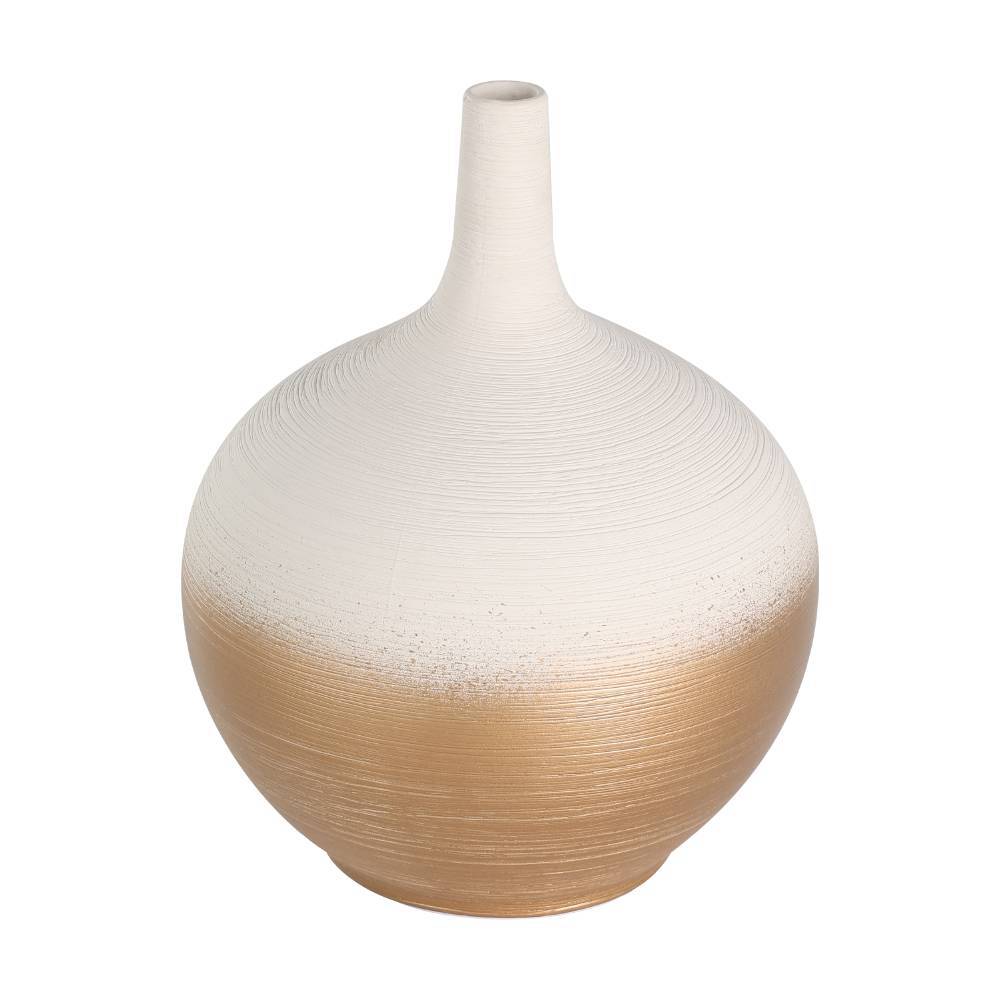421413 Ваза декоративная SARYKSU, H235, керамика, белый, золотой создает в помещение уют и прекрасно дополняет интерьер квартиры или загородного дома, оформленный как в классическом, так и современном стиле. Продукцию, принадлежащую к дизайнерскому классу, создают только из самых качественных и безопасных материалов с использованием новейших технологий производства. В ней идеально выверена каждая деталь. Изделие преображает пространство, гармонично сочетая в себе уют, удобство и красоту. Этой стильной модели не страшны капризы моды — и через год, два, пять она будет смотреться также уместно.