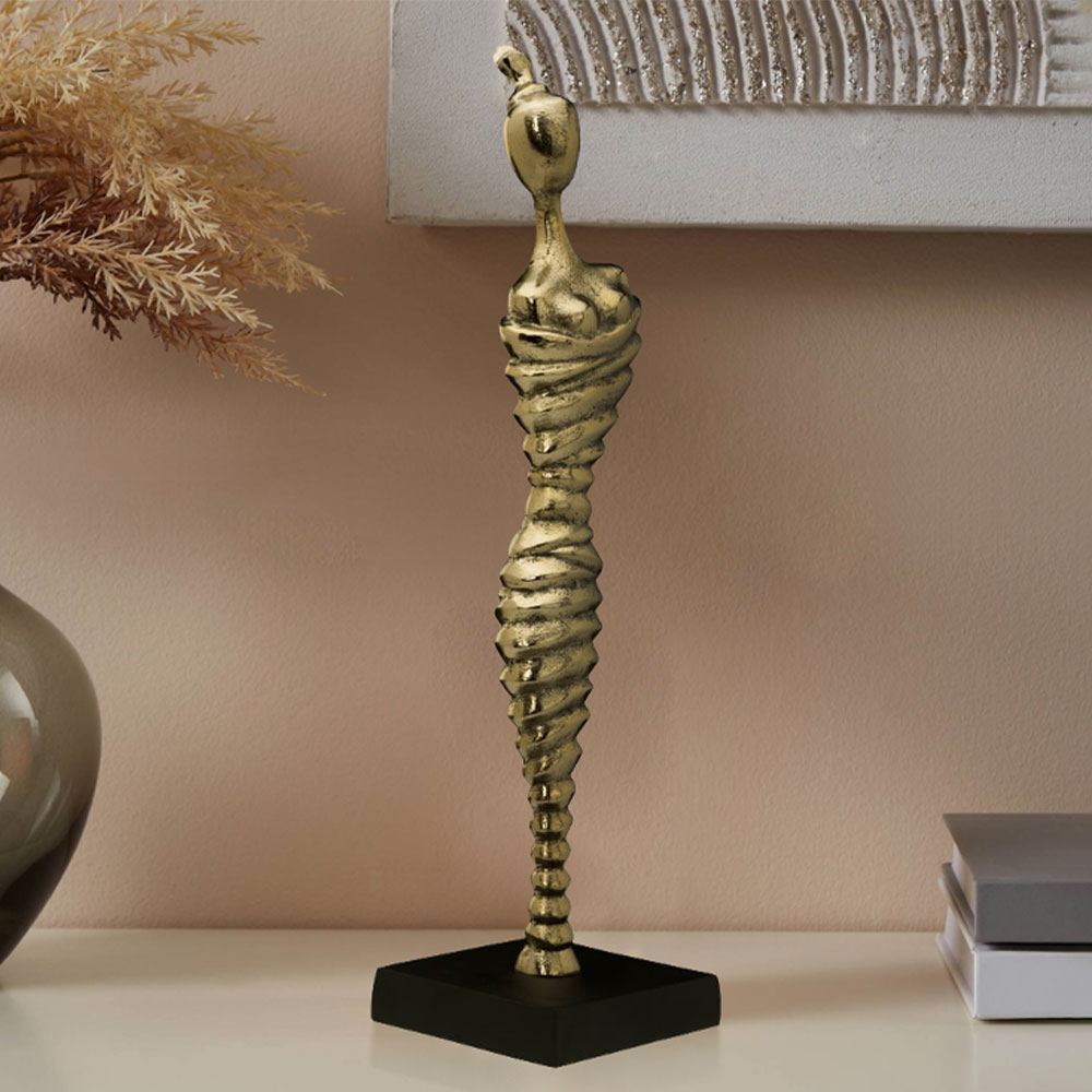 427275 Статуэтка NABUNTURAN L100, B100, H410 алюминий, состаренный золотой, черный — это предмет интерьера, способный создать в пространстве неповторимую атмосферу шика и изящества. Четкость линий, благородство форм и идеально продуманная эргономика способны впечатлить и удовлетворить требования самых взыскательных покупателей и придать интерьеру особый колорит.
