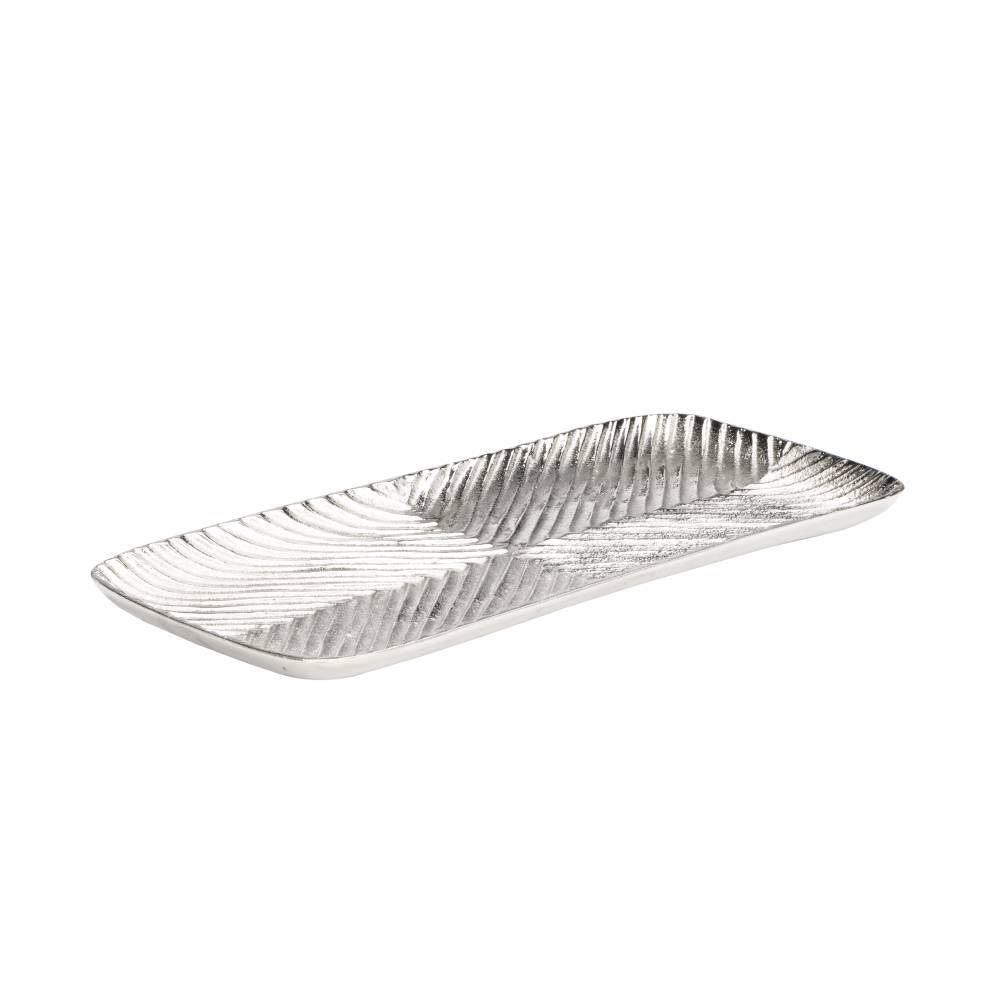 427481 Поднос NOSIMARO L390, B165, H25 алюминий никель создает в помещение уют и прекрасно дополняет интерьер квартиры или загородного дома, оформленный как в классическом, так и современном стиле. Продукцию, принадлежащую к дизайнерскому классу, создают только из самых качественных и безопасных материалов с использованием новейших технологий производства. В ней идеально выверена каждая деталь. Изделие преображает пространство, гармонично сочетая в себе уют, удобство и красоту. Этой стильной модели не страшны капризы моды — и через год, два, пять она будет смотреться также уместно.