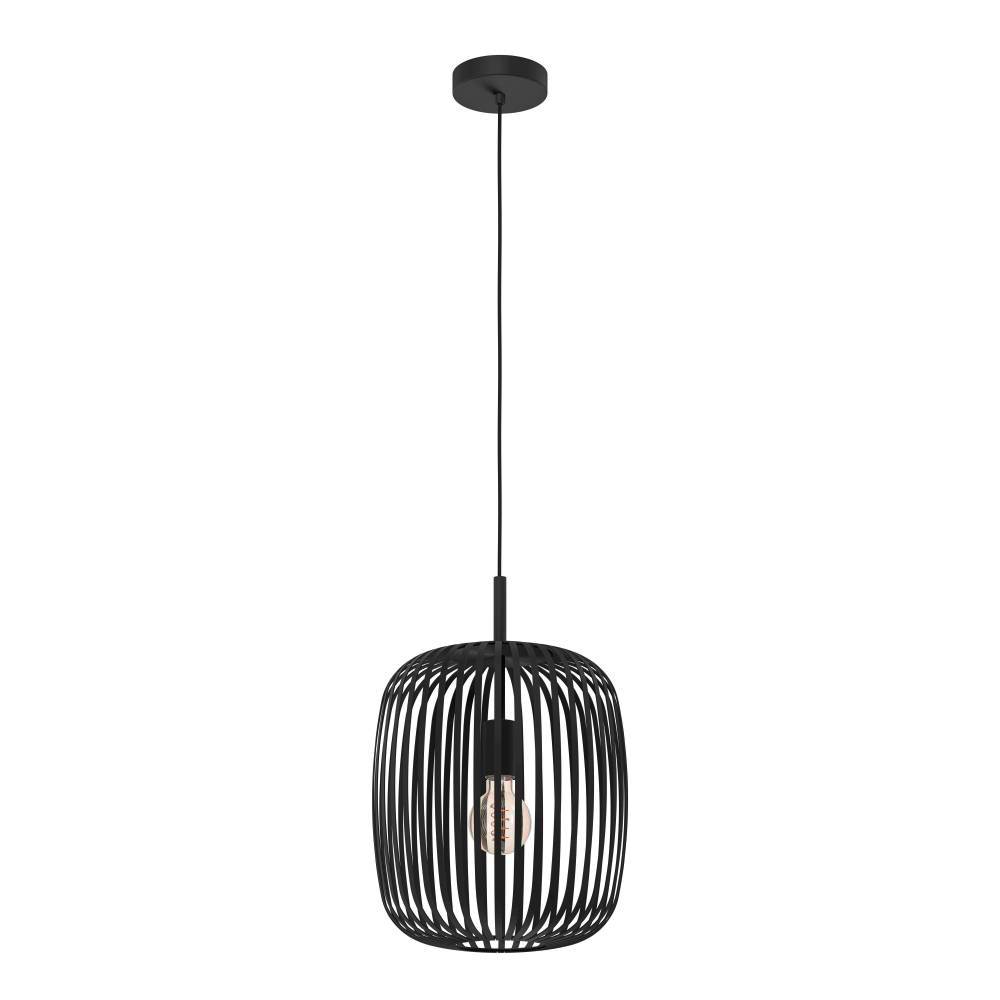 900494 Подвесной потолочный светильник ROMAZZINA, 1x40W, E27, H1100, ?325, сталь, черный — это предмет интерьера, способный создать в пространстве неповторимую атмосферу шика и изящества. Четкость линий, благородство форм и идеально продуманная эргономика способны впечатлить и удовлетворить требования самых взыскательных покупателей и придать интерьеру особый колорит.
