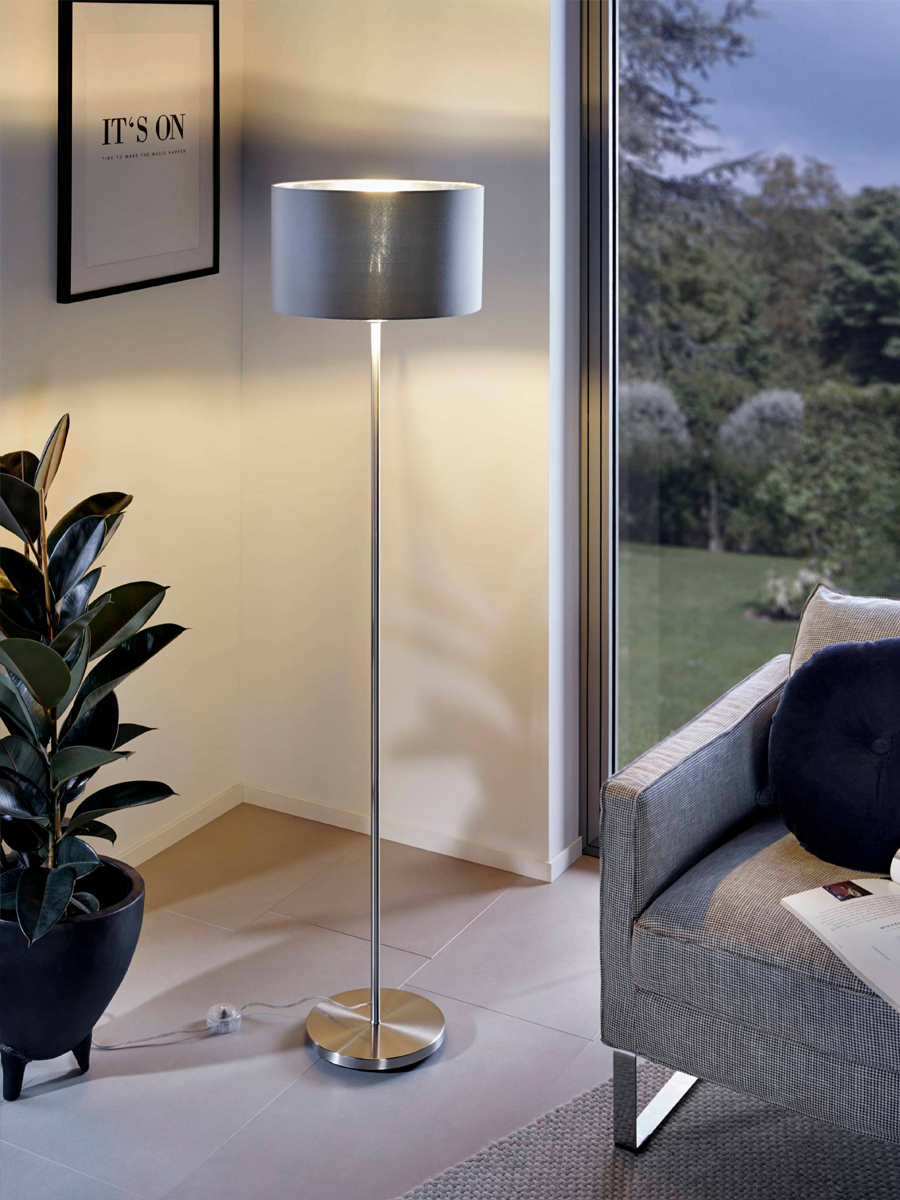95173 Торшер (напольный светильник) MASERLO с ножным выключателем — это предмет интерьера, способный создать в пространстве неповторимую атмосферу шика и изящества. Четкость линий, благородство форм и идеально продуманная эргономика способны впечатлить и удовлетворить требования самых взыскательных покупателей и придать интерьеру особый колорит.