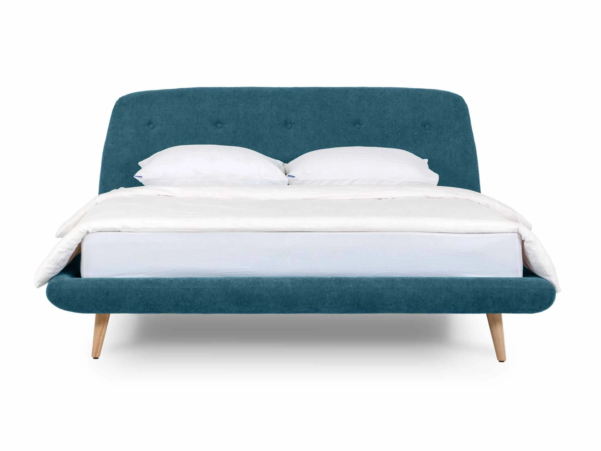 Кровать двуспальная, стиль скандинавский, бирюзовая, на ножках формирует комфортную зону отдыха и задает общее настроение спальни. Она предназначена для ежедневного использования и помогает создать условия для спокойного и полноценного сна. Благодаря сбалансированным пропорциям модель хорошо вписывается в пространство и не перегружает интерьер визуально.